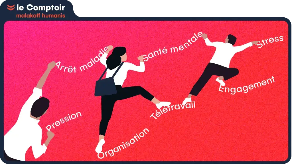 Les études Retrouvez les synthèses de nos études autour de vos grands enjeux RH Actualités Les dossiers Les études Les vidéos Les podcasts Étude Santé mentale des dirigeants de TPE-PME Aujourd’hui, la santé mentale des dirigeants s’impose comme un enjeu majeur pour la pérennité des entreprises, encore largement méconnu.En partenariat avec la Chaire de l’emlyon sur la Santé mentale des dirigeants, cette étude met en lumière des enseignements inédits.• Synthèse• Regards croisés Baromètre Fragilités 2025 Aujourd’hui, une majorité de salariés declare vivre au moins une situation de fragilité. Un vécu qui impacte leur quotidien, leur travail et donc la vie en entreprise.Cette édition 2025 du Baromètre Fragilités analyse ce défi auquel font face salaries et entreprises.• Synthèse• L’étude Baromètre absentéisme 2025 : éclairage d'un enjeu majeur en entreprise 42 % des salariés se sont vu prescrire au moins un arrêt de travail en 2024. Si l’absentéisme semble se stabiliser, c’est à un niveau élevé. Les résultats de l’édition 2025 du Baromètre Absentéisme offre de précieux éclairages sur le phénomène et les situations particulières des jeunes et des managers. • Synthèse • Décryptage Allongement de la vie professionnelle : comment mieux l’accompagner ? 25 % en 2025, 33 % en 2035 : la part des salariés de plus de 50 ans ne cesse d’augmenter. Pour les salariés comme pour les dirigeants, penser l’allongement de la vie professionnelle est désormais une nécessité. Découvrez dans notre étude leurs attentes et besoins. • Synthèse (.pdf 1,23 Mo) Quel contrat social pour attirer et fidéliser les salariés ? Mieux comprendre les nouvelles aspirations des salariés en matière de contrat social et comment les entreprises y répondent : tel est l’objet de cette étude du Comptoir. • Synthèse (.pdf 444 Ko) • L’étude Baromètre Absentéisme 2024 Avec 42 % des salariés arrêtés au moins une fois en 2023, le niveau d’absentéisme marque un fort recul. Seules les plus petites entreprises voient leur absentéisme continuer de croître. Synthèse (.pdf 174 Ko) Emploi des seniors : Comment accompagner les entreprises ? Ce dossier met en lumière le besoin de soutien pour salariés et dirigeants face aux défis liés à l'âge. Les thèmes abordés incluent l'employabilité, la santé et la qualité de vie au travail, le soutien aux aidants. • Synthèse (.pdf 1 Mo) • L’étude Fragilités des salariés : les entreprises prêtes à agir Difficultés financières, situations familiales compliquées, position d’aidant, maladies graves, perte de sens, épuisement professionnel, … les résultats de l’édition 2023 du Baromètre Fragilités des salariés de Malakoff Humanis montrent la hausse et l’imbrication des fragilités d’origine professionnelle et personnelle qui touchent les salariés. • Synthèse (.pdf 2,2 Mo) Baromètre Santé des salariés 2023 Cette 14e édition de notre baromètre Santé des salariés(1) montre un état de santé général des salariés qui poursuit sa dégradation. Découvrez dans la synthèse de notre baromètre Santé des salariés 2023 notamment quels sont les signes de fragilité. • Synthèse (.pdf 450 Ko) • L’étude Baromètre Absentéisme 2023 Avec 50 % de salariés arrêtés au moins une fois cette année, l’absentéisme atteint des records. En tête des motifs d’arrêts longs, les troubles psychologiques qui ont triplé en 3 ans et en principales victimes les jeunes et les managers. Découvrez dans la synthèse de notre baromètre absentéisme 2023 notamment quels sont les signes avant-coureurs. • Synthèse (.pdf 1,7 Mo) • L’étude (interview) Étude Engagement 2023 Dans cette synthèse retrouvez les résultats de l’enquête « engagement, fidélisation et attractivité des entreprises. » qui mettent en lumière les écarts entre les attentes des salariés et les actions déployées par les entreprises. • Synthèse (.pdf 137 ko) • L’étude (interview)